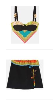 상의 Versace Barocco Goddess Bralette Top / 하의 Versace Safety Pin Slash Mini Skirt