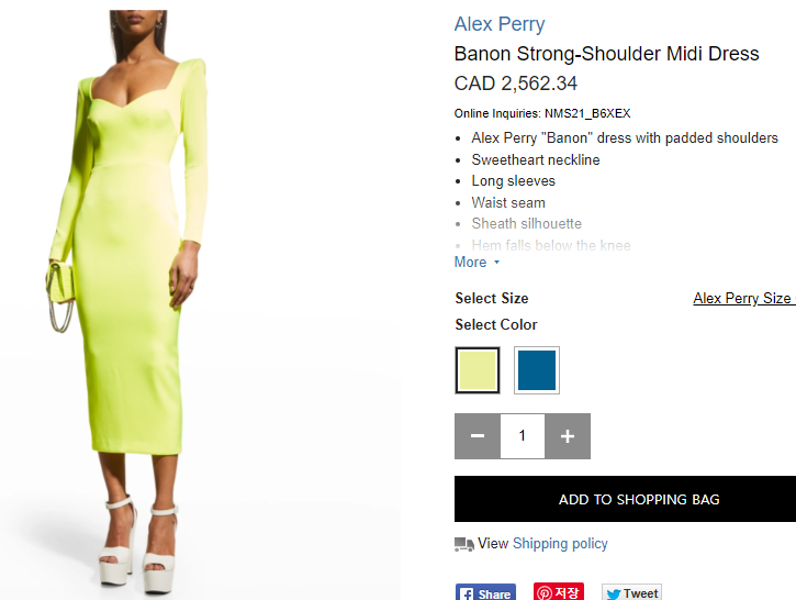 케이티 페리가 입은 라임색 드레스는 알렉스 페리 제품 !